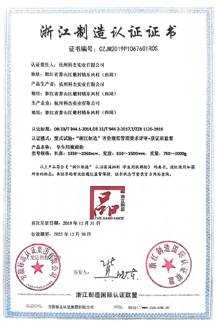 公司現(xiàn)有國家發(fā)明、實用性和外觀專利14項。目前本公司成為“行業(yè)品牌領(lǐng)跑者、高端品質(zhì)標(biāo)準(zhǔn)制訂者”、凸顯了本公司在浙江省學(xué)生床上用品企業(yè)行業(yè)中的標(biāo)桿地位。